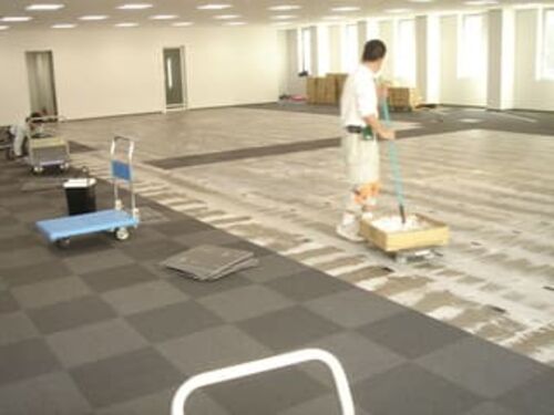 行楽日和だった先週末 近所の清掃業者さんからご紹介いただいたオフィスビルの現状復旧工事、 約400㎡のタイルカーペットの貼替えをしてきました。 使用タイルカーペット、東リGA100S 既存のカーペットはがしと並行し、下地のOAフロアに専用糊 東…