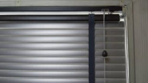 TOSO(トーソー)デザインブラインド・ルーチェの取付施工例です スラット(羽根)は35㎜幅のアルミ製のメタリックグレー色、 ヘッドレール・ボトムレールは木製のチャコールウッド色、 ラダーテープは布製のダークグレー色という組合わせのブラインド…