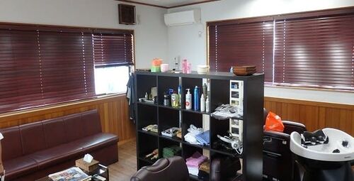 ウッドブラインドのご依頼を多くいただいております 草加市の床屋さん 以前は厚地とレースのカーテン二重吊りだったのをウッドブラインドに交換、窓枠内にすっきりと収めました。 (タチカワブラインド・フォレティア50 FT-3335マホガニー) 蕨市の不動産屋…