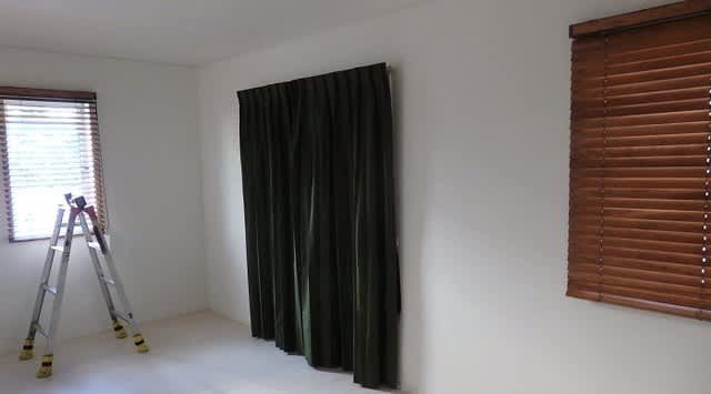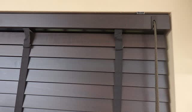 以前は厚地とレースのカーテン二重吊りだったのをウッドブラインドに交換、窓枠内にすっきりと収めました。