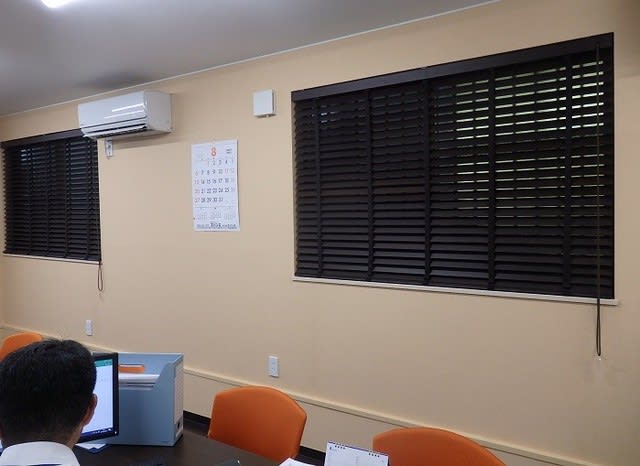 隣のお宅からの視線を遮りつつ換気も可能なウッドブラインドをおすすめしました。