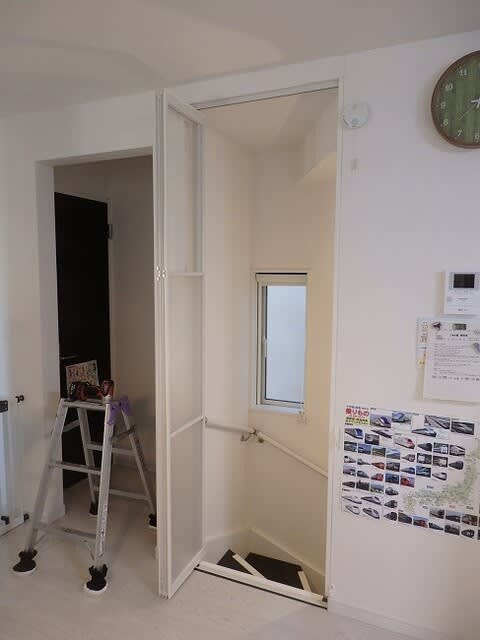 木枠設置・クロス貼りをして折戸を取付けしました。