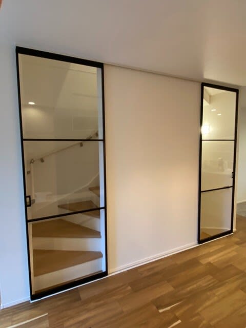 当方ではシンプルに引戸のみを取付けさせていただきました。