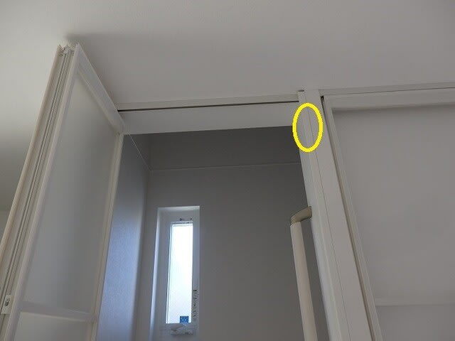 折戸は枠内に納まるため、引戸より厚みのある木枠です。