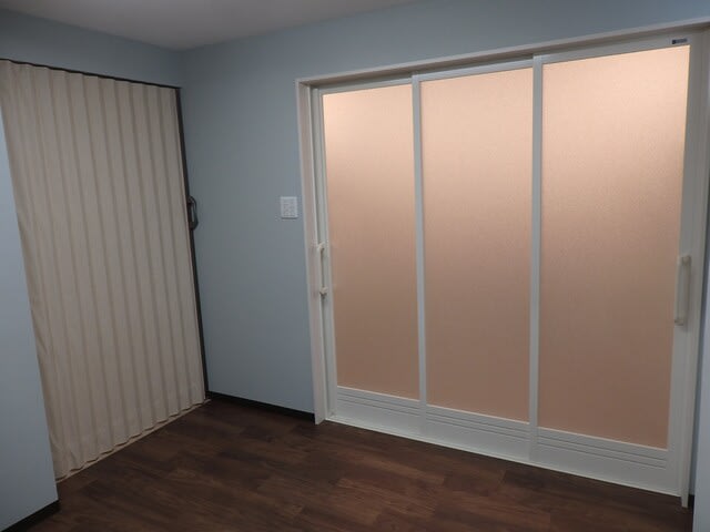 浴室の出入口は広い3枚引き戸、脱衣所の出入口はアコーデオンカーテンです。