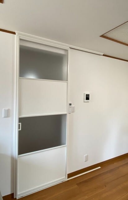 採光窓フロスト調3段の引戸を左右それぞれに取付けしました。