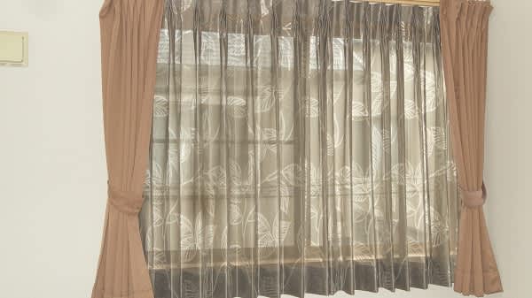 カーテンは全てアスワン「セ・ラ・ヴィ」ブランドのミラーレース・2倍ヒダ形態安定仕立です。