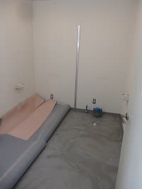 既存塗床の上に長尺シート「サンゲツ エスリューム2㎜厚」を施工、
